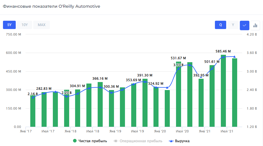 Мы считаем, что O'Reilly Auto Parts имеет огромный потенциал для долгосрочного инвестирования, так как с 2008 г. сохраняет положительную динамику финансовых показателей, имеет очень сильную программу обратного выкупа акций, и не столь подвержена влиянию пандемии. Компания не прекращает расширять своё присутствие на территории США, оставаясь национальным поставщиком.