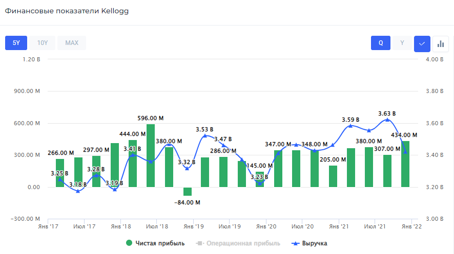 Чистая прибыль Kellogg выросла на 18,28% по сравнению с 2020 г. и составила $1,5 млрд. Основным драйвером роста стала переоценка стоимости пенсионных планов, которая была частично снижена проблемами с цепочками поставок, забастовками и пожаром на фабрике. Свободный денежный поток составил $1,15 млрд за счёт снижения денежного потока от операционной деятельности на 14,07% до $1,71 млрд и роста капитальных затрат на 9,5% до $553 млн.