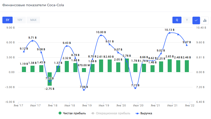 Чистая прибыль Coca-Cola выросла на 26% – до $9,77, несмотря на рост себестоимости продукции и увеличение операционных расходов. Основными драйверами роста чистой прибыли стали более высокая выручка и дополнительный доход от операций и активов. Это, в свою очередь привело к росту свободного денежного потока на 29,9% – до $11,26 млрд.