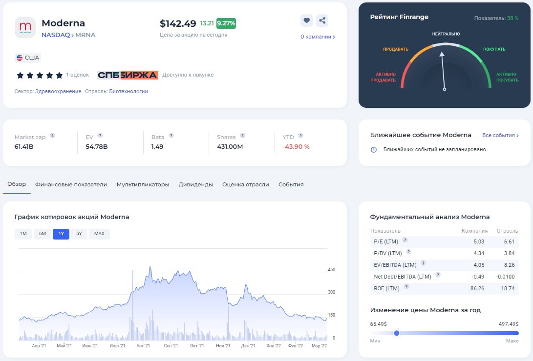 Тем не менее, мы не считаем компанию перспективной для включения в свой портфель в 2022 г. до возможного появления на рынке другого прорывного продукта, который бы обеспечил компании конкурентное преимущество. Подробнее писали в обзоре. #MRNA