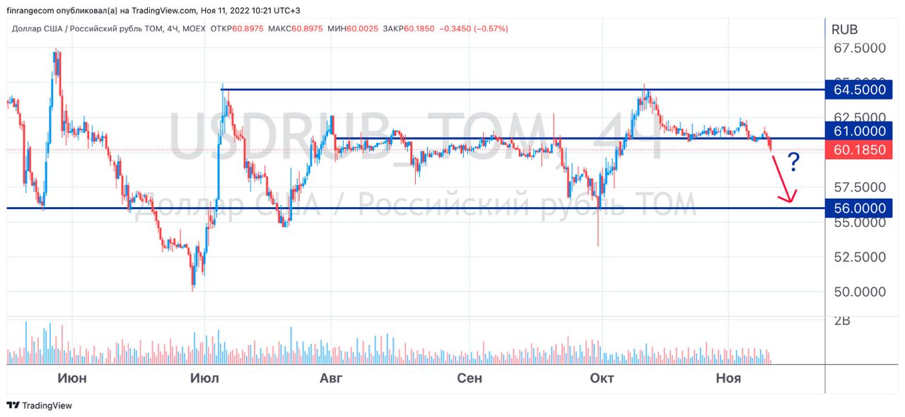 Учитывая вышеперечисленное, можем увидеть доллар снова ниже 60 руб. #Рынок