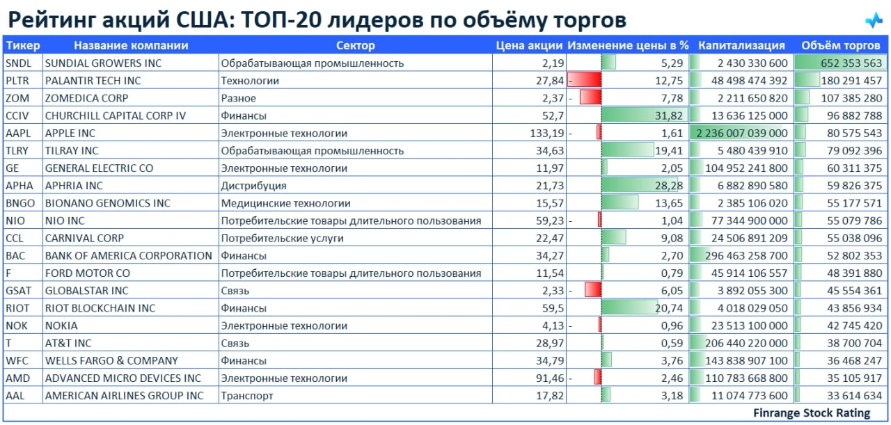 🌪Рейтинг акций США: ТОП-20 лидеров по объёму торгов🇺🇸
