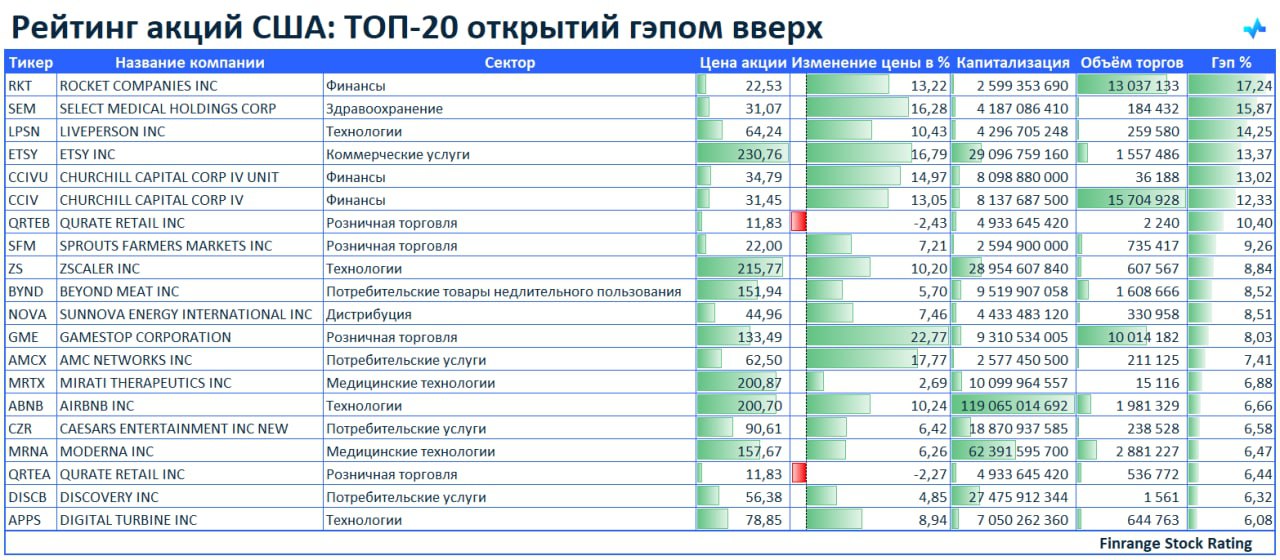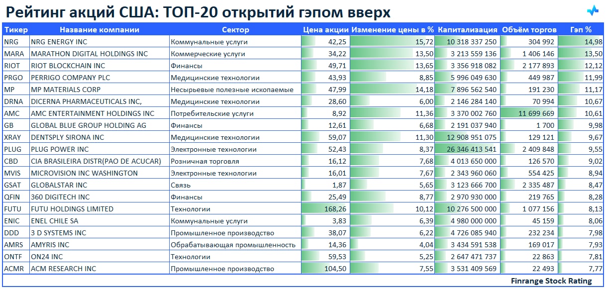 🚀Рейтинг акций: ТОП-20 открытий гэпом вверх🇺🇸
