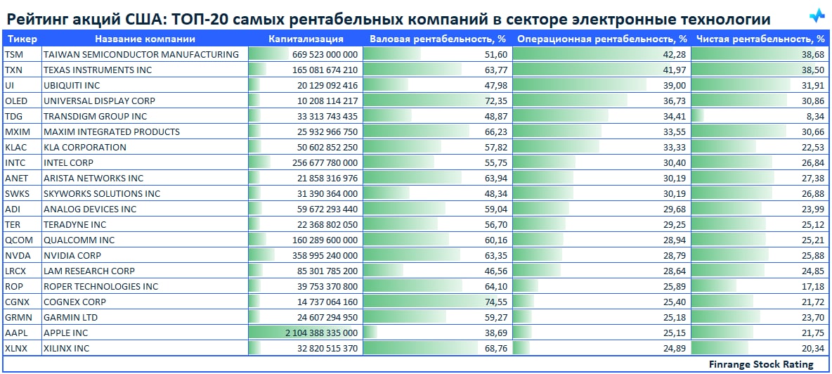 💪Рейтинг акций США: ТОП-20 самых рентабельных компаний в секторе электронные технологии🇺🇸
