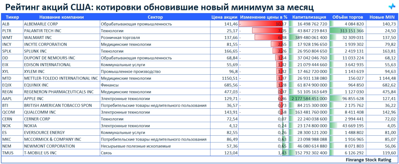 📉Рейтинг акций США: котировки обновившие новый минимум за месяц🇺🇸