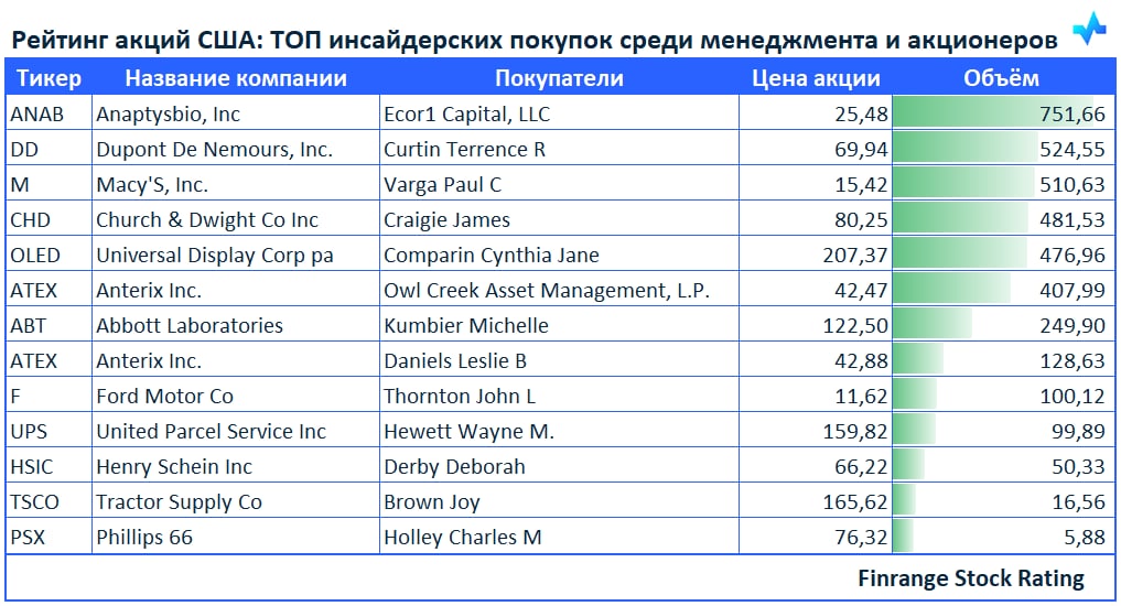 👔Рейтинг акций США: ТОП инсайдерских покупок среди менеджмента и акционеров🇺🇸