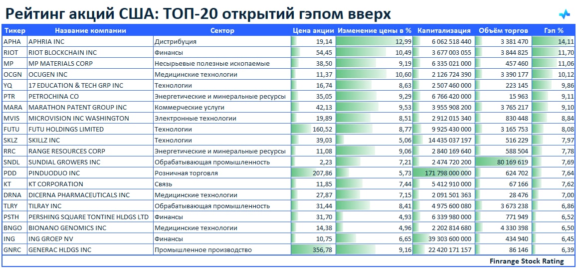 🚀Рейтинг акций США: ТОП-20 открытий гэпом вверх🇺🇸