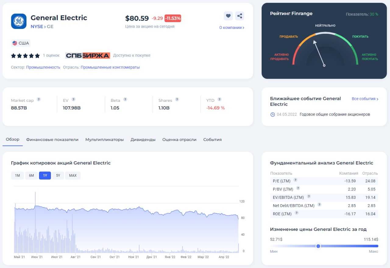 🔋Финансовые результат General Electric за I кв. 2022 г. Прогноз акций GE