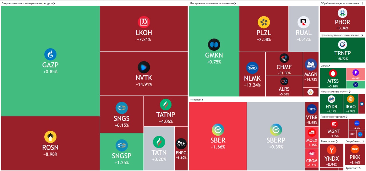 Таким образом, на прямую Северстали закрыты международные рынка, так как с компанией вряд ли кто-то будет сотрудничать. Иначе можно попасть под вторичные санкции США. На фоне этого, акции Северстали за 2 дня упали на 25%. Вслед за собой акции металлурга потянули всю отрасль, так как есть не только аналогичный риск попадания в SDN лист, но большая часть продукции Северстали пойдёт на российский рынок – это приведёт к росту приложения и снижению цен на сталь.