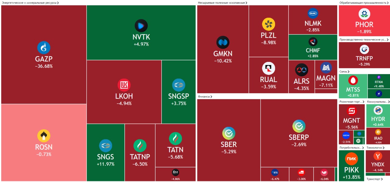 На данную новость, рынок отреагировал очень резко, акции упали болеем чем на 30%, сработали стопы и маржин коллы, которые привели к распродажам во всех российских акциях. Мы же успели скинуть Газпром только по 252,33 руб., но тоже было очень больно из-за большой доли в портфелях.