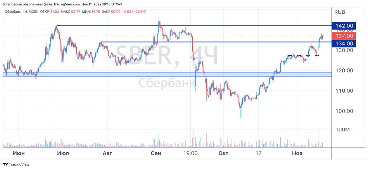 В сравнении с рынком, доходность низкая. Но учитывая то, что до этого момента рынок ждал убыток по итогам года, участники восприняли новости с позитивом. В результате чего, мы увидели ралли в акциях Сбера и обновление локальных максимумов. Ближайший уровень сопротивления по обыкновенным акциям 142 руб. – там ожидаем фиксацию в бумагах.