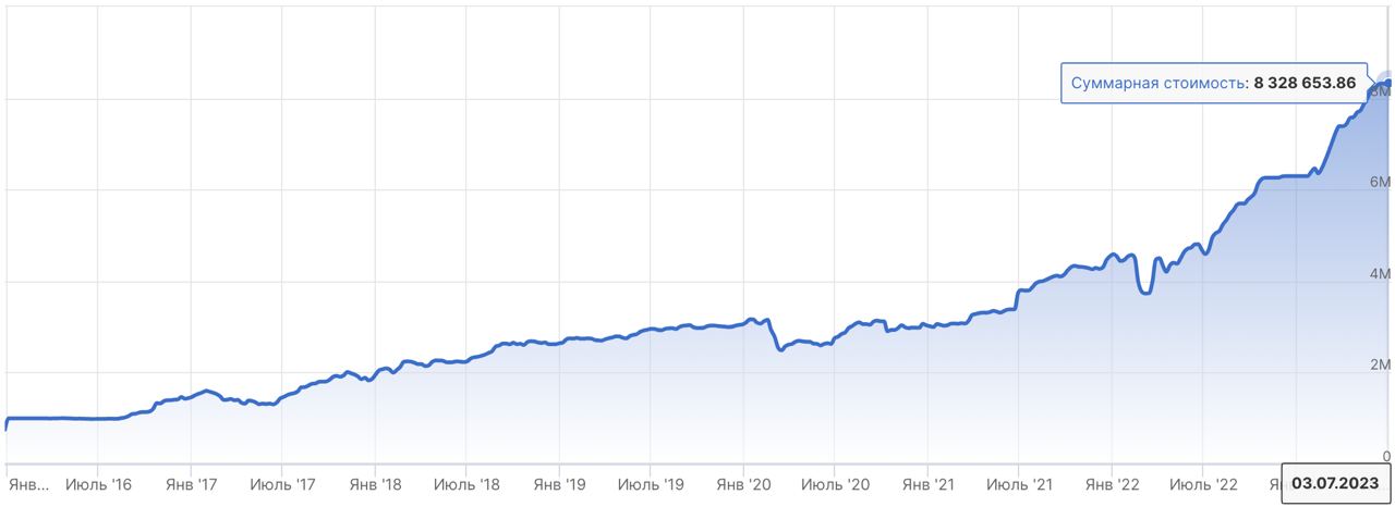 • Доходность портфеля: +734,68%