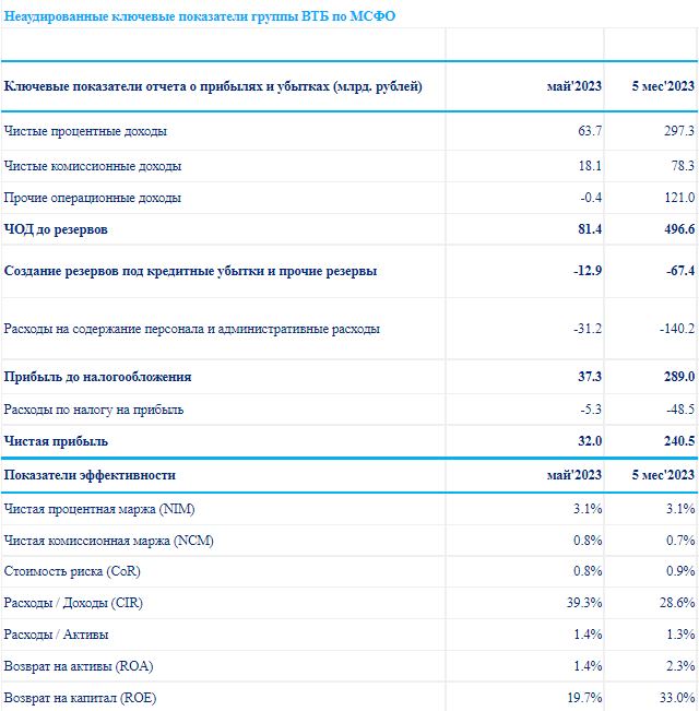 📊Финансовые результаты ВТБ за 5 мес. 2023 г. по МСФО. Дивидендов ждать не стоит