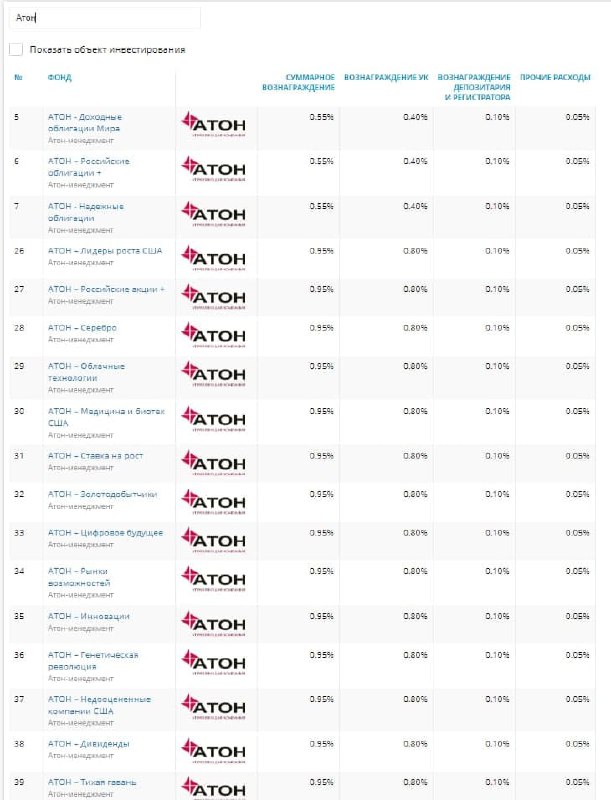 Посмотреть уровень комиссий паевых фондов Атона и сравнить его с другими биржевыми фондами можно в Рэнкинге по инфраструктурным расходам.