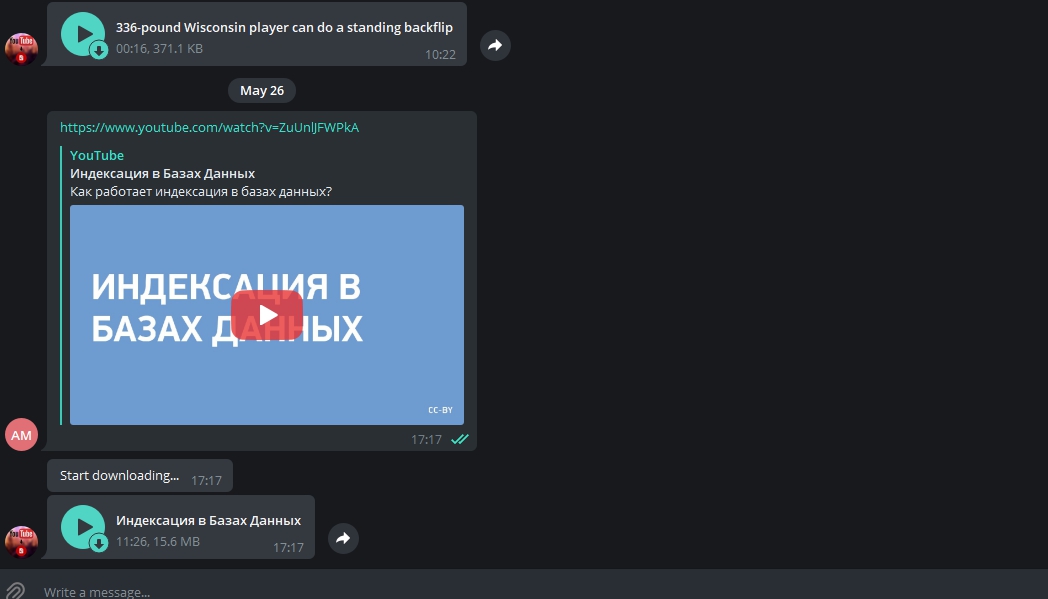 В нем бывают ошибки, но основной функционал, похоже, готов. Если отправить ссылку - вернется mp3 файл. У Telegram есть ограничения в 50 Мб для аудиофайлов. Это примерно 1 час сконвертированного видео (т.е. с длительностью дольше - можно даже не пытаться). Возможность конвертации больших видео добавиться, но только через 1-2 месяца.