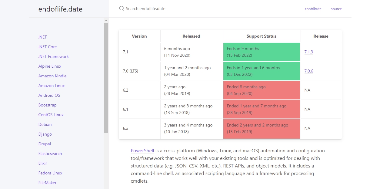 Когда-то наткнулся на сайт, на котором перечислены сроки поддержки популярных продуктов: https://endoflife.date/ . То есть вместо поиска этой информации в документации ее можно быстро найти на этом сайте. Я сам пользуюсь этим сайтом и рекомендую держать его в закладках. Сохранит вам 5-10 минут поиска на 1 используемый продукт.
