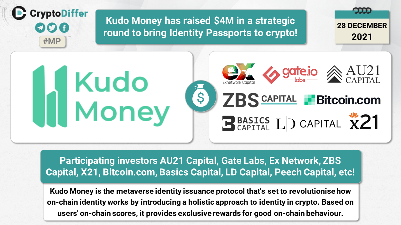 Kudo Money has raised $4M in a strategic round to bring Identity Passports to crypto!
