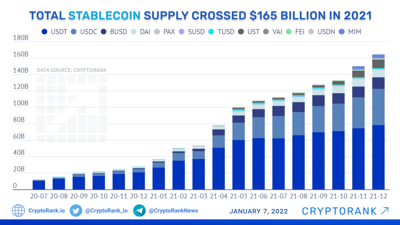 Total Stablecoin Supply Crossed $165 Billion in 2021📈