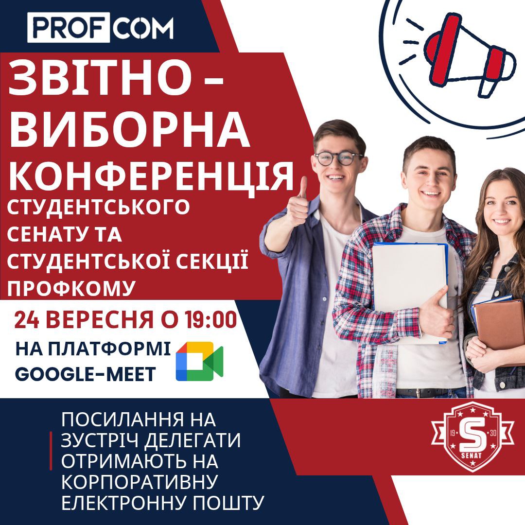 📣 Звітно-виборна конференція Студентського сенату та студентської секції профкому