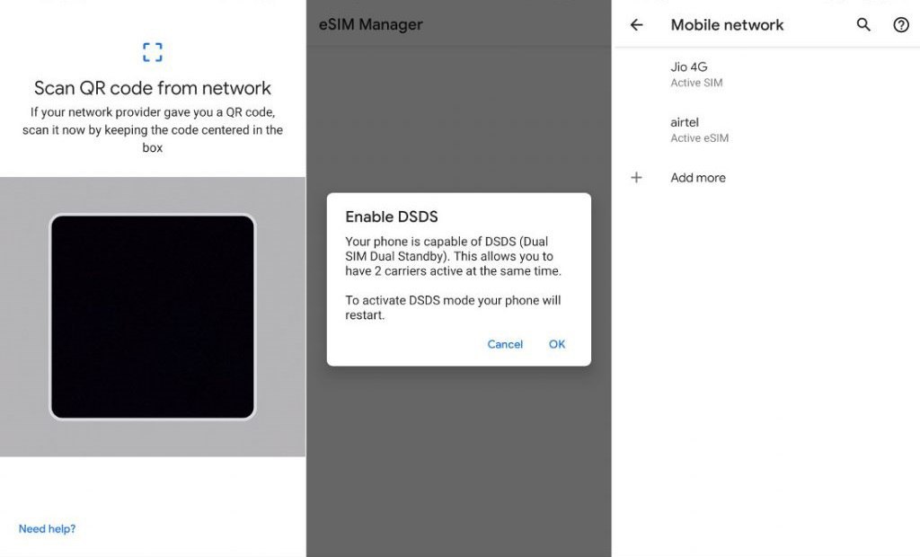 На Pixel 3 со второй beta Andorid Q появилась возможность управлять профилями eSIM, в том числе добавлять свои, переключаться