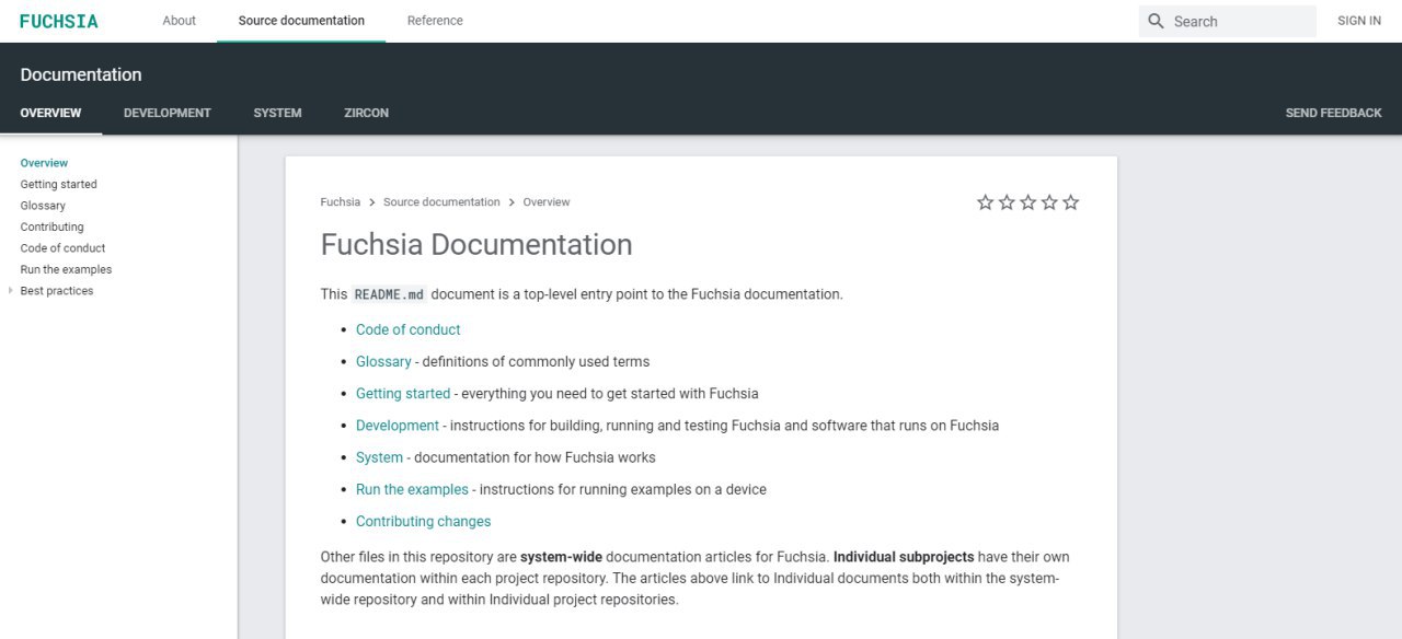 Заработал сайт fuchsia.dev