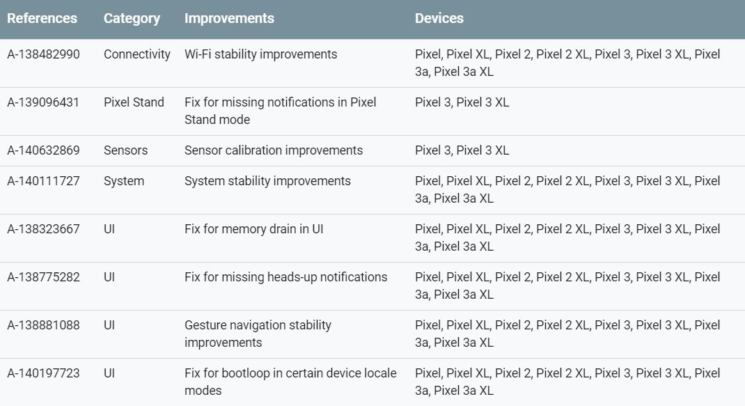 Список изменений для Pixel