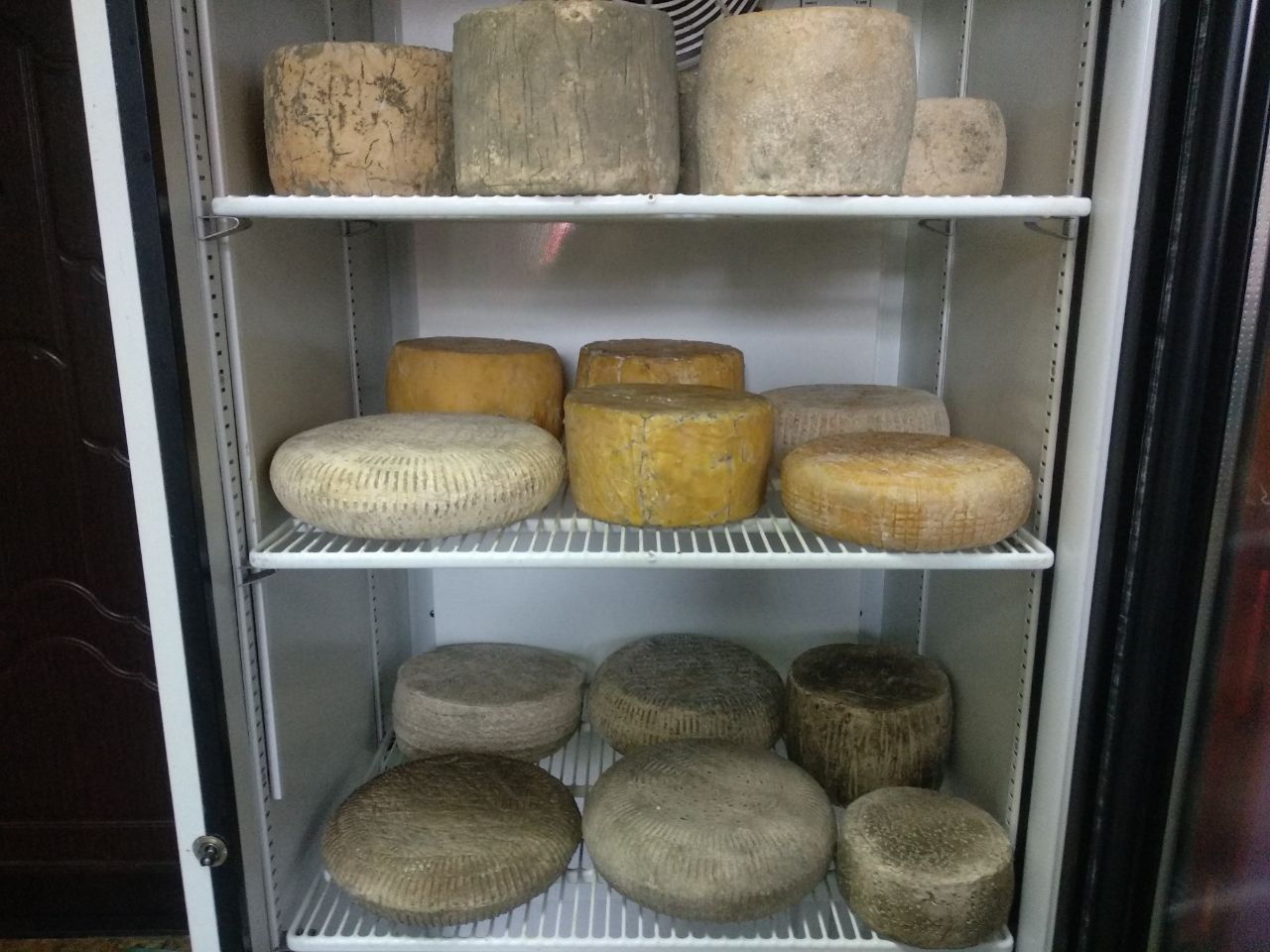 Сейчас у неё около 100 кг сыра разной выдержки: от 3 до 6 месяцев. Это десятки головок в натуральной корке. Некоторые из них обрабатываются оливковым маслом с золой фруктовых деревьев, другие – мёдом, третьи – смесью молотого кофе, какао и чёрного перца. Некоторые протираются солёной сывороткой, которая придаёт сырам красивые розовые или оранжевые оттенки, а какие-то лежат и красиво плесневеют.