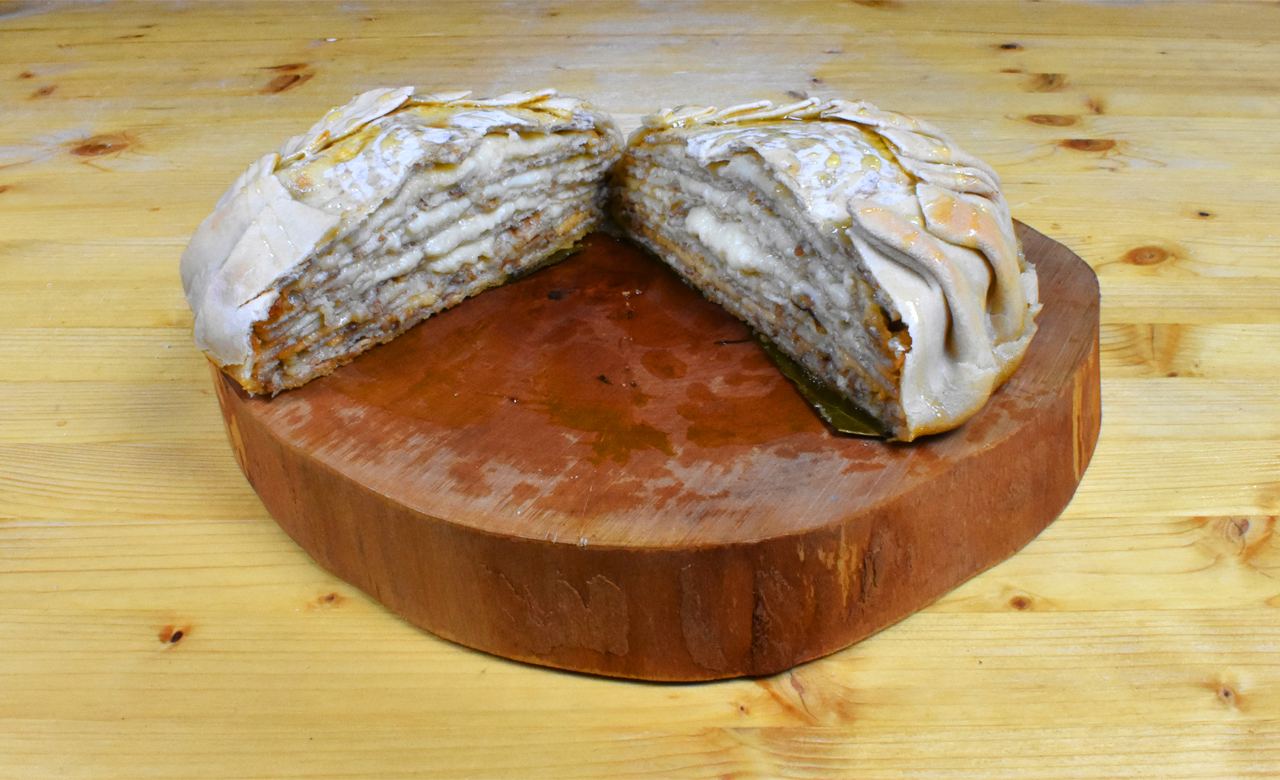 Если же много плоских вещей положить друг на друга, получится что-то слоёное. Именно это что-то слоёное может быть плацентой (placenta cake), которую вам предлагают добродушные хозяева. В блюдо обычно добавляют сыр и мёд. Получается такой блинный торт или аутентичный cheesecake.