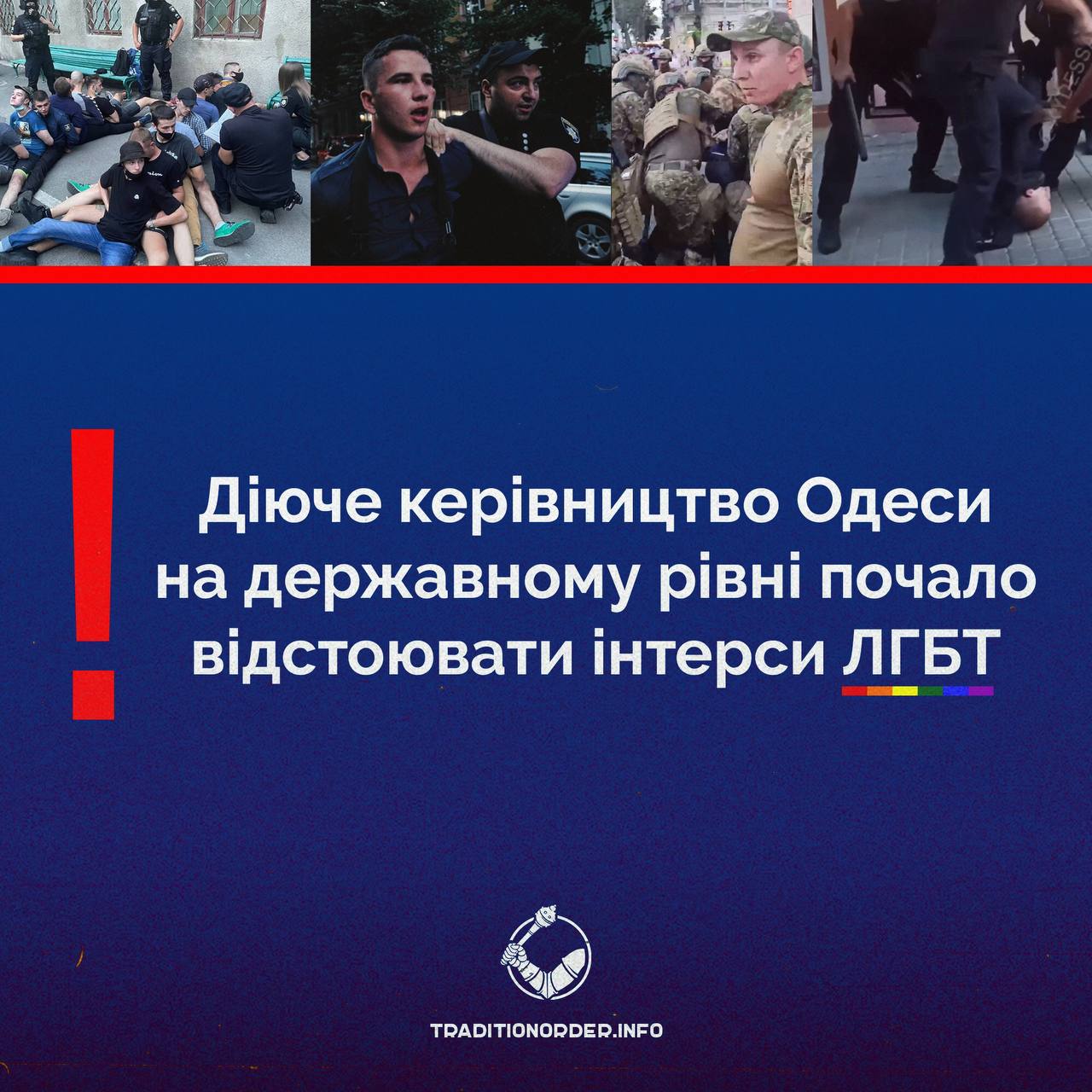 Події в Одесі - це пряме свідчення підтримки руху ЛГБТ нинішнім керівництвом міста. Своїми діями, вищі посадові особи підтверджують негативне ставлення до традиційних цінностей, небажання їх підтримувати, розвивати та захищати в Одесі.
