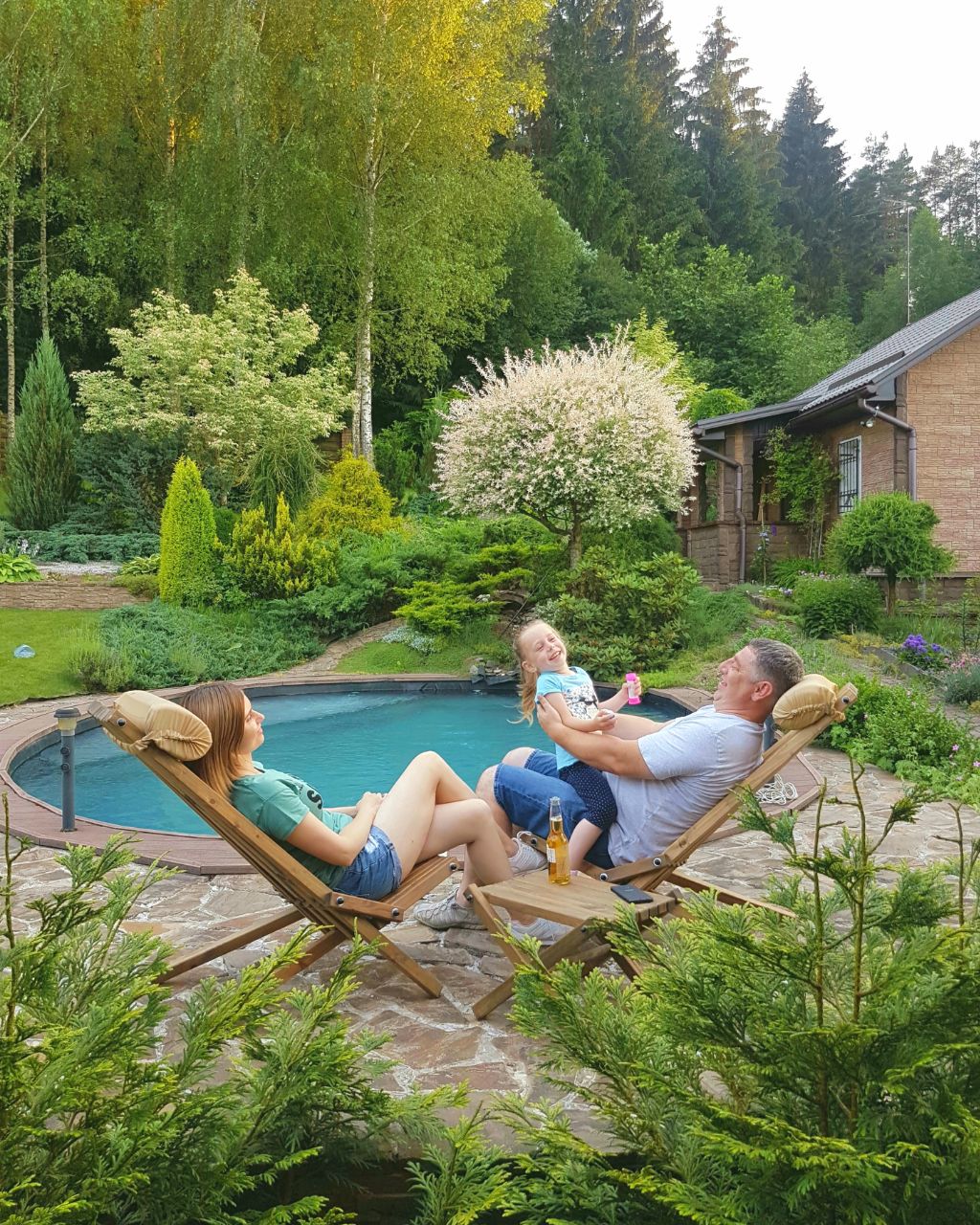 Так говорят родственники и друзья, которые у нас бывают. Двоюродный брат, заезжающий к нам частенько с женой и дочкой в гости (они на фото ниже⬇️), глянул на голубую водичку в бассейне и заявил, что у нас не хуже, чем на Мальдивах!🏖