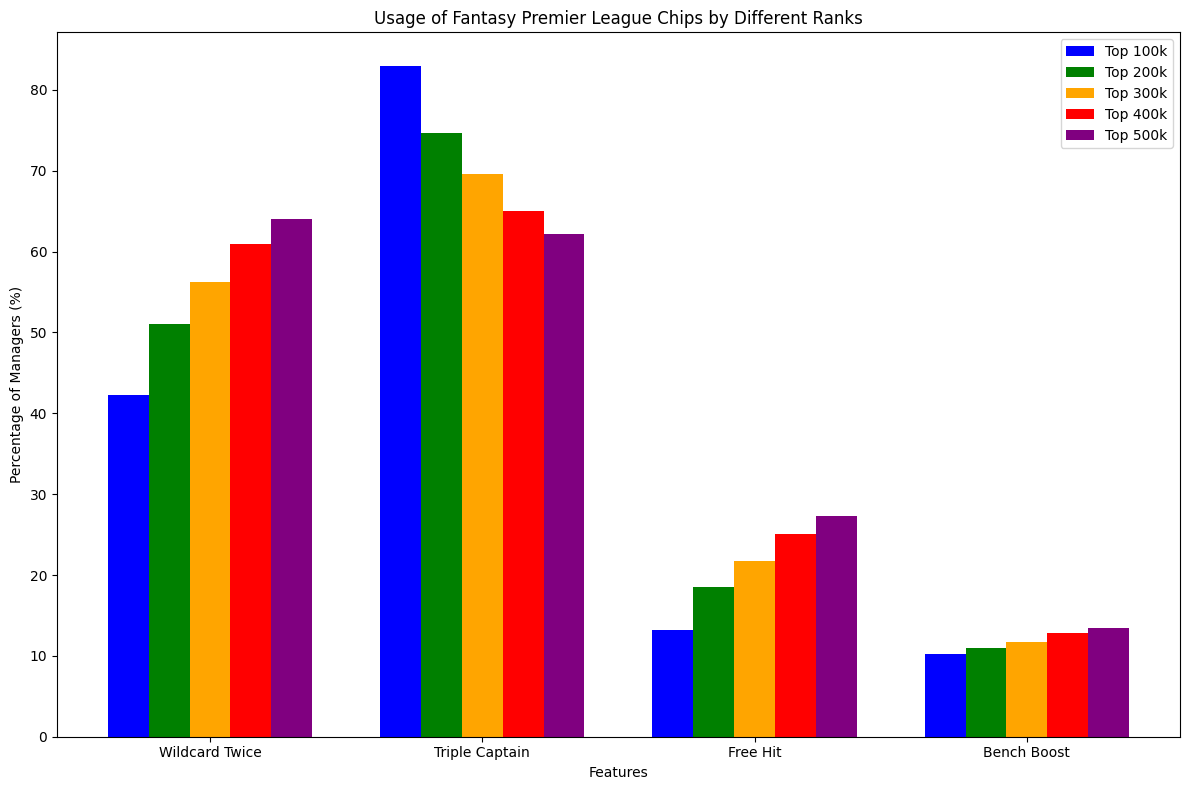 1. Видно закономерности от рейтинга и частоты использования чипов. Чем дальше от первых 100k тем выше процент менеджеров использовавших чип