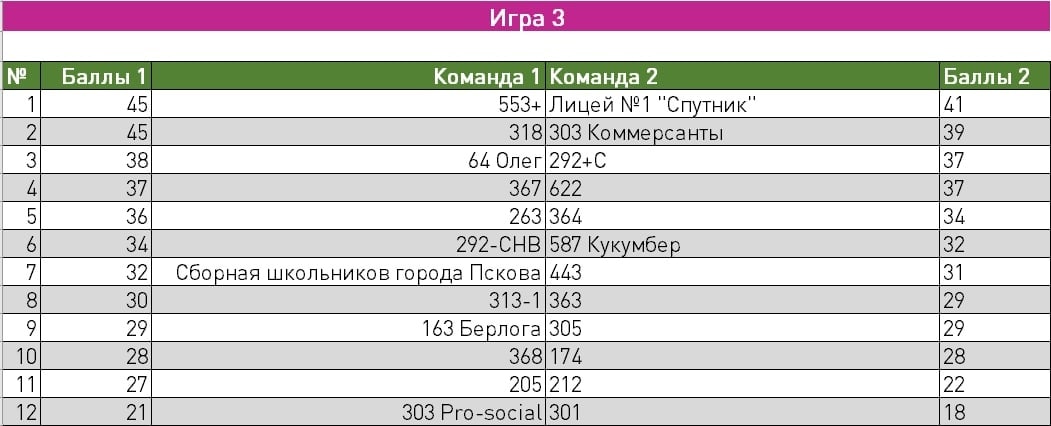 Напомним, что четвертый игровой день — дебаты на выбывание. В четверть финала пройдут лишь 12 команд, набравших наибольшее суммарное количество баллов. Список команд, дошедших до четвертой игры есть в прикрепленном фото. Рекомендуем подготовиться, ребята!
