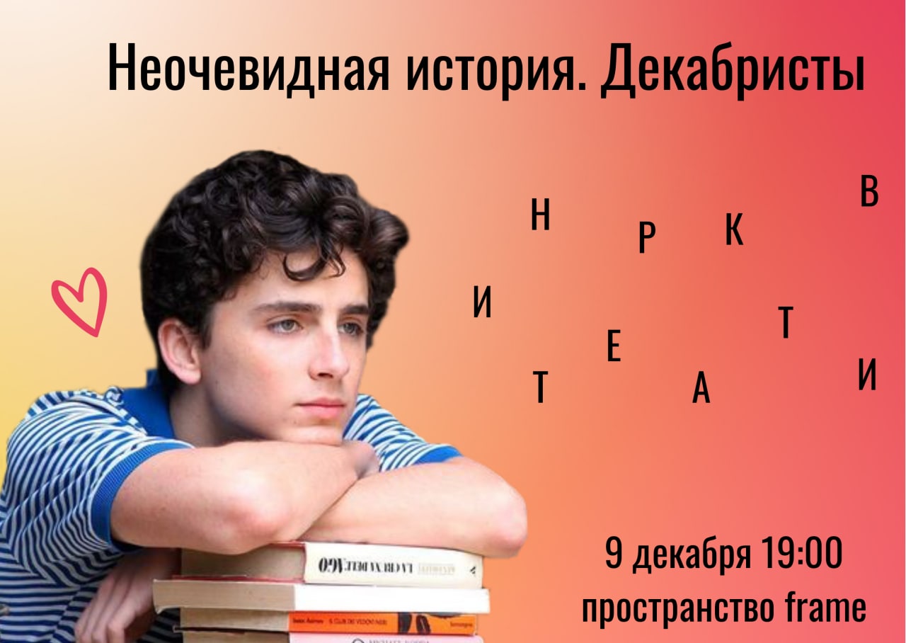 И обязательно приходите в четверг, 9 декабря, в творческое пространство frame на 7-й Красноармейской, 10. Второе занятие «Неочевидной истории» начнётся в 19:00. Ведущий проекта Дмитрий Серёгин уже подготовил и лекционную часть, и интерактивчик.