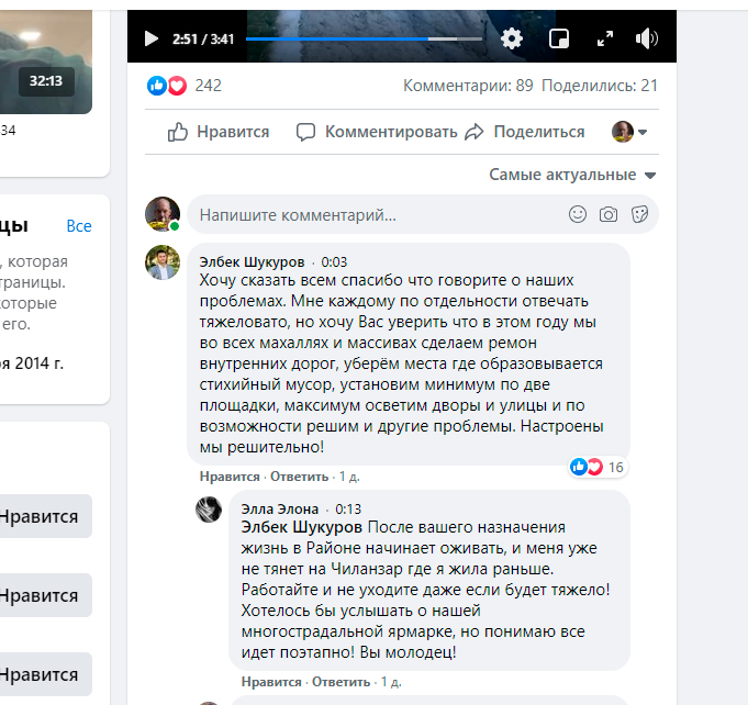 Сергелийский хоким Элбек Шукуров уже четвертый день подряд на своей странице в Facebook ведет прямые эфиры - ходит по району, объясняет, показывает что-то. Сидит в кабинете, отвечает на комментарии, общается с людьми. На двух языках.
