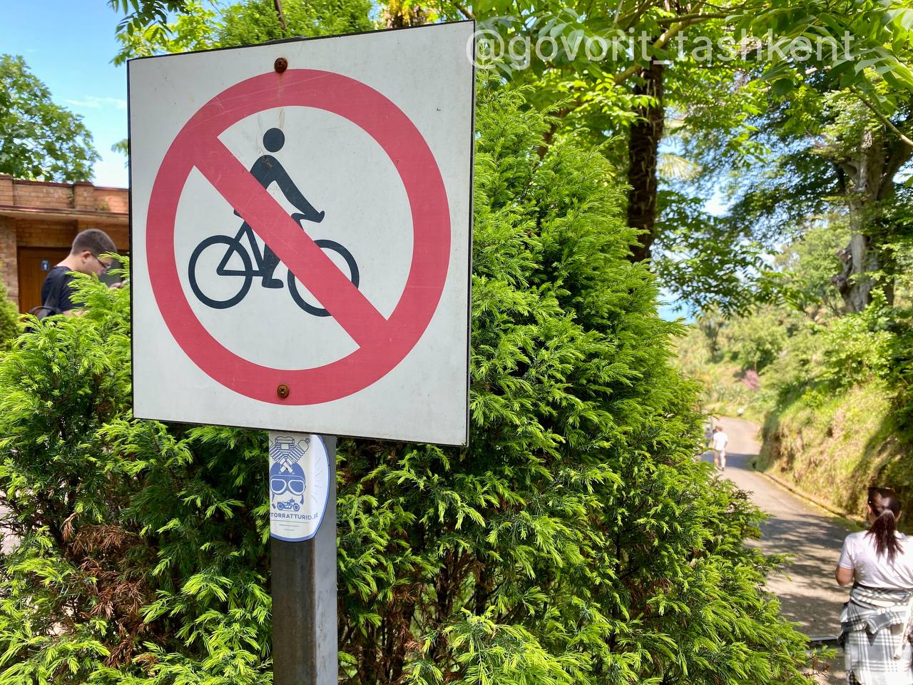 В прекрасном Ботаническом саду Батуми, где мне посчастливилось побывать этой весной, нельзя передвигаться по территории на велосипеде! Запрещающие знаки там повсюду. Огромные штрафы за мусор и вред растениям — и это в климатических условиях, когда прорастёт даже выброшенная вами косточка!