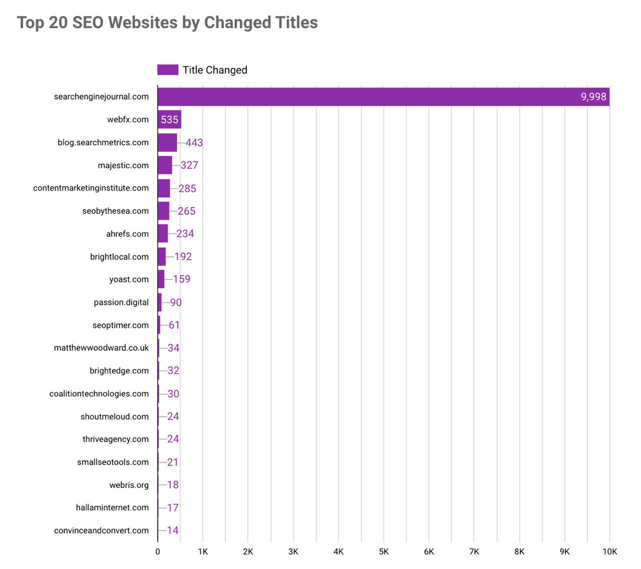 1. Только 9 из 100 сайтов не сделали никаких изменений за месяц. Общее впечатление, что англоязычные сеошники, у которых есть трафик продолжают активно работать над своими сайтами.