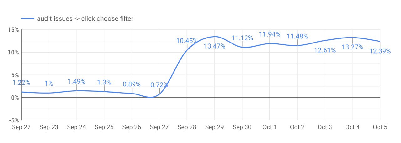 В обновлении дизайна списка ошибок вернулись к старой версии отображения всех параметров. Новое не всегда значит лучшее. В результате после выливки конверсия в использование переключалки с ошибками выросла с 1% до 10% (смотрите скрин ниже).
