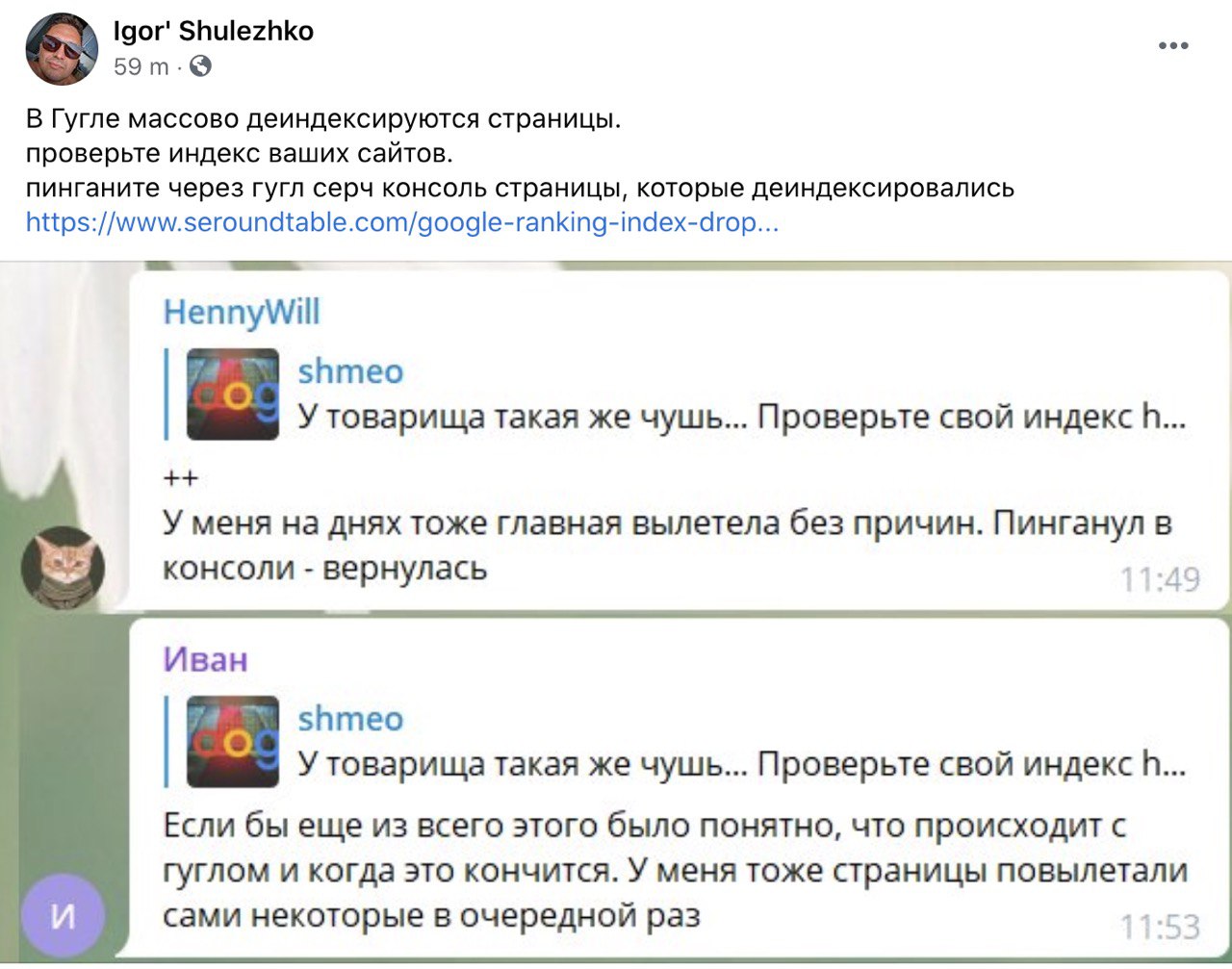 Игорь Шулежко правильно наводит шороху. Многие веб-мастера подверждают, что хорошо оптимизрованные страницы, приносящие трафик выпали из индекса.