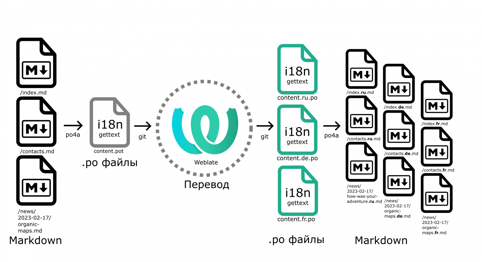 В данной статье мы расскажем как перевести статический веб-сайт с Markdown (Zola, Hugo, Jekyll, Pelican, Gatsby, и д.р.) на все языки мира и поддерживать переводы в актуальном состоянии при изменении исходных текстов.