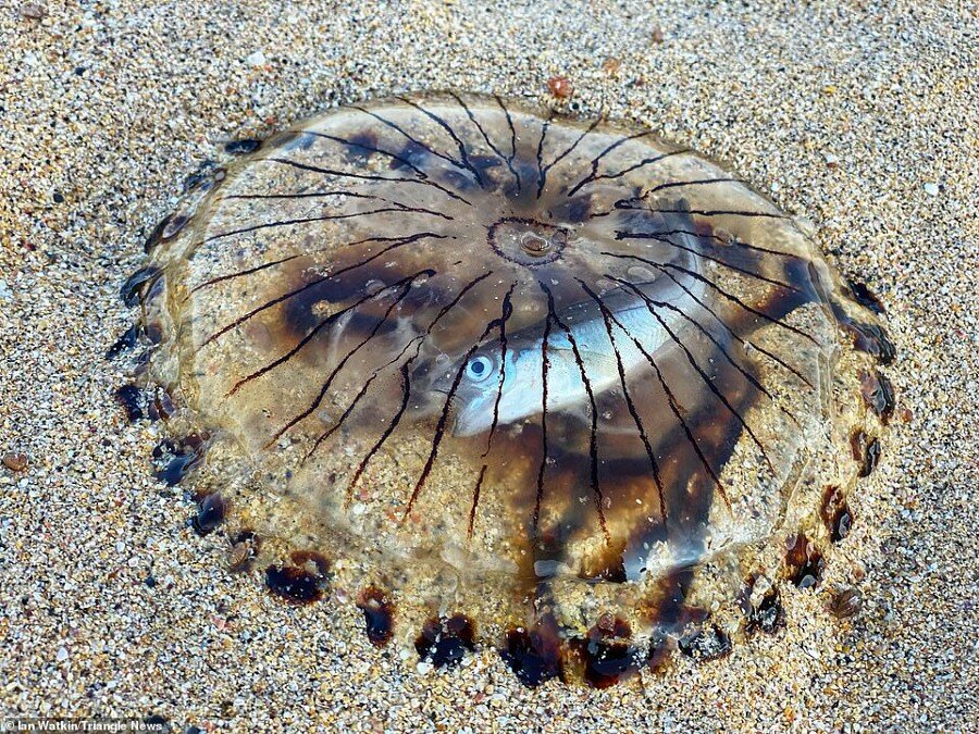 На британский берег вымыло компасную медузу с последним ужином внутри: