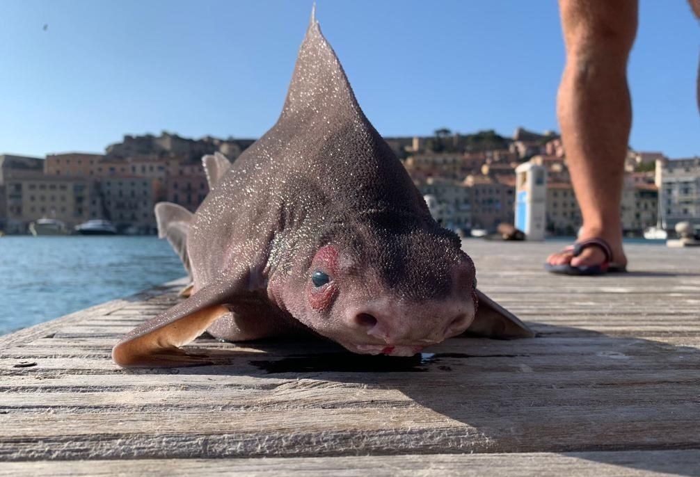 🌍У итальянского острова нашли странную мертвую акулу. Знакомьтесь, это обыкновенная центрина, или акула-свинья (Oxynotus centrina):