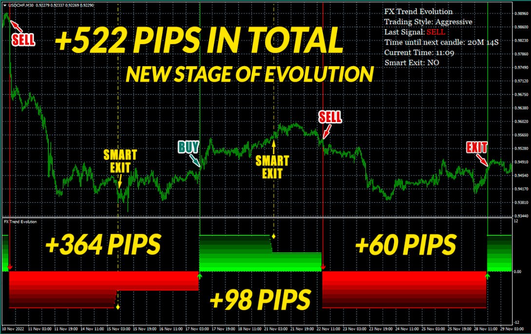 Choose BUY or SELL when the signals appear and the color on the oscillator changes. Simply Exit the trades as soon as the Smart Exit alert pops up, the signal on our oscillator becomes thinner. So, to achieve lower risk level, please, use the exact Take Profit Values shown in all types of signal alerts.
