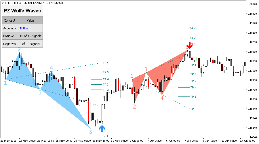 PZ Wolfe Waves are naturally occurring trading patterns present in all financial markets and represent a fight towards an equilibrium price. These patterns can develop over short and long-term time frames and are one of the most reliable predictive reversal patterns in existence, normally preceding strong and long price movements.