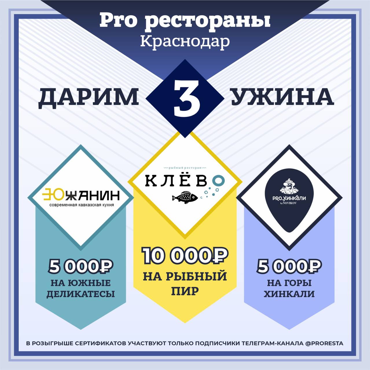 🎁ТРИ УЖИНА В РЕСТОРАНАХ КРАСНОДАРА ДЛЯ ВАС И ВАШИХ ДРУЗЕЙ!