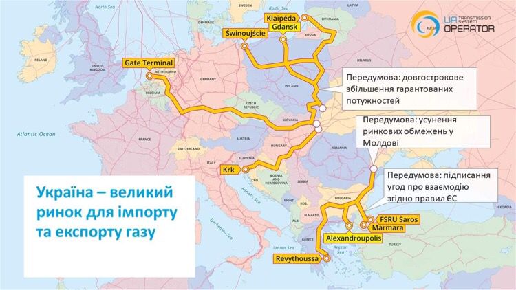 Україна має відповідну газову інфраструктуру – розгалужену ГТС, потужні газові сховища; розвинутий внутрішній ринок із великим видобувним потенціалом і належну регуляторну базу.