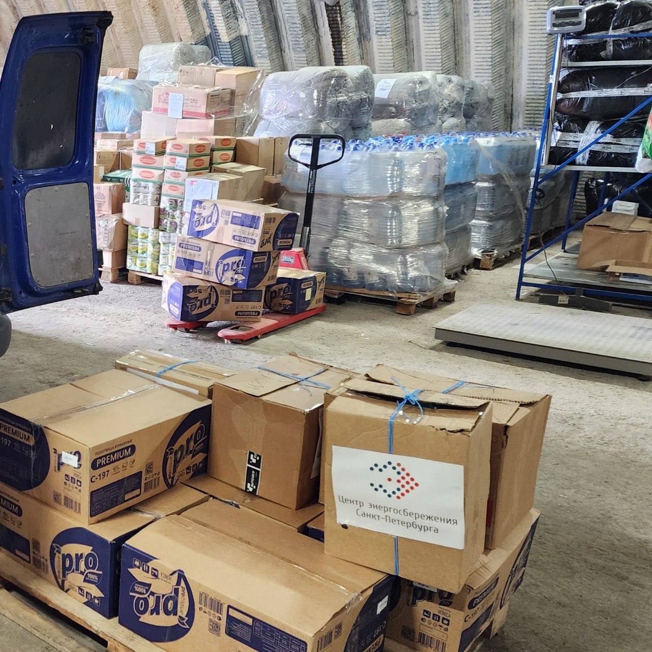 22 коробки с питьевой водой, продуктами питания и предметами первой необходимости доставили в пункт приема помощи на базе Центра международных гуманитарных связей Санкт-Петербурга, организованного по поручению Губернатора Санкт-Петербурга Александра Беглова,