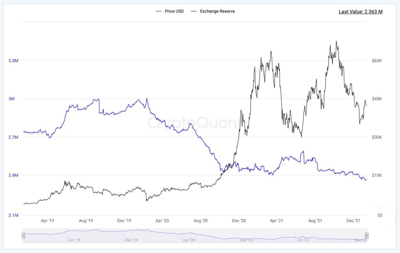 Постоянно увеличивающееся количество участников крипторынка, и тот факт, что на биржах меньше BTC, означает меньшее давление со стороны продавцов в будущем.