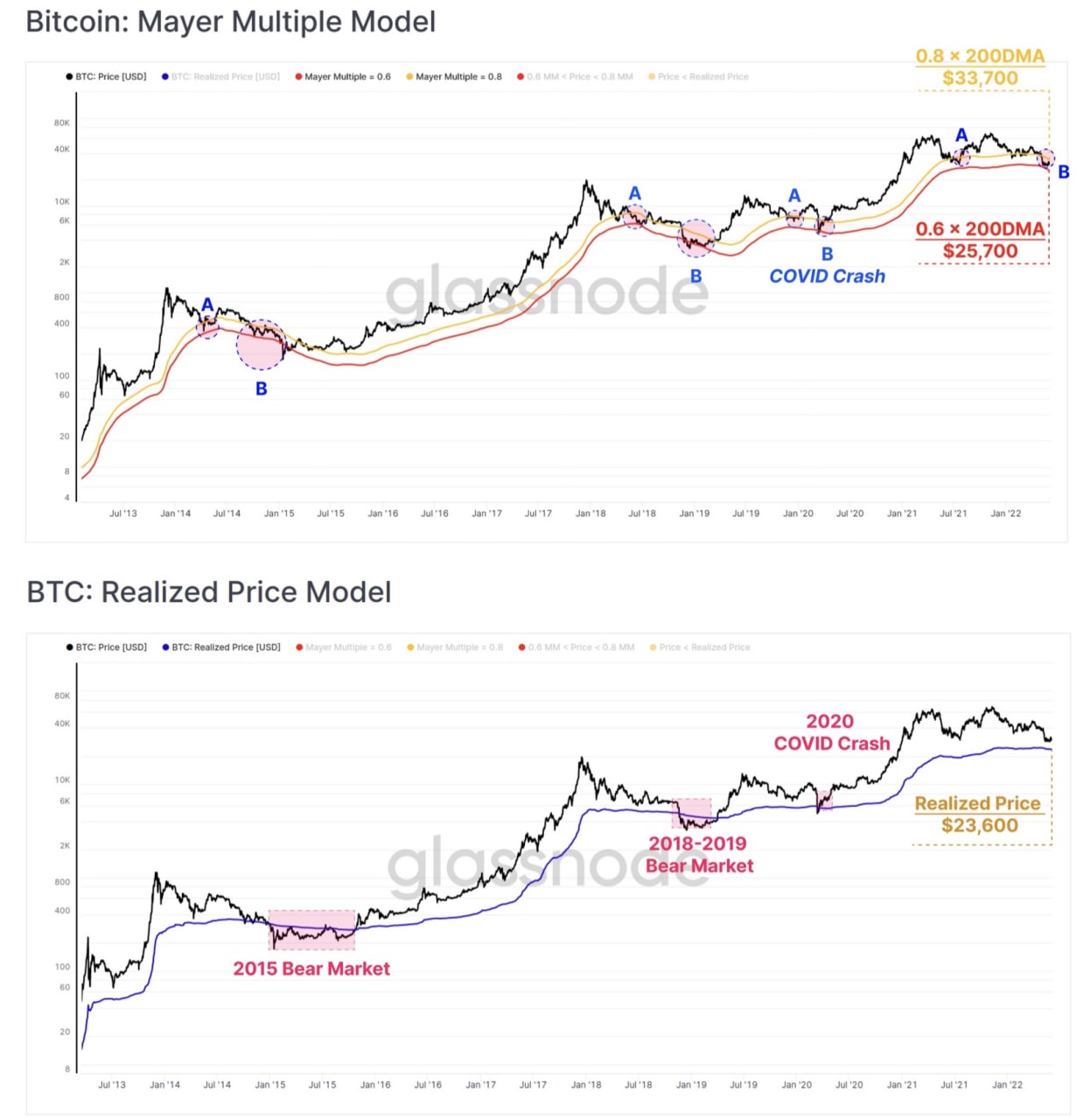 Среди всех моделей, отображающих зоны роста-падения на рынке биткоина, есть два простых, но мощных индикатора, которые в более чем 84% случаев верно предсказывали начало и окончание медвежьих циклов: Коэффициент Майера и Реализованная цена.