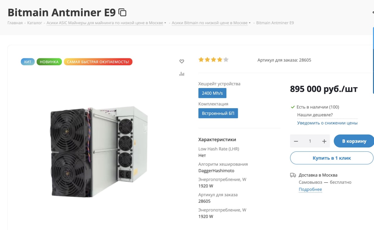 Куда же денутся мощности майнеров Эфира после 19 сентября? Ethash по-прежнему остается самым прибыльным консенсусным алгоритмом на сегодняшний день, поскольку новый Bitmain Antminer E9 с 2,4 гигахеш в секунду может приносить примерно $56,49 в день. Сравните это с одним из самых распространенных прибыльных биткоин-майнеров на сегодняшний день, Bitmain Antminer S19XP со 140 TH/s, который приносит $5,17в день.