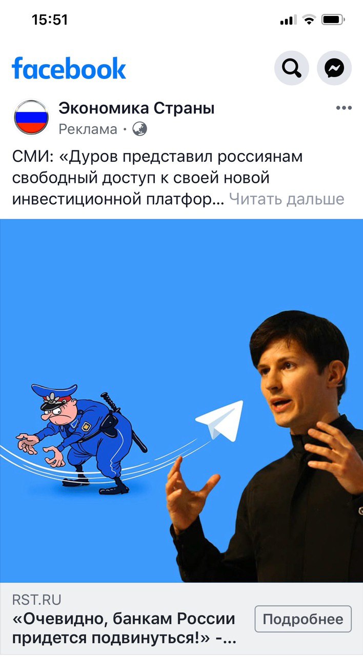 Как например, только что получил в ленте это. Причём реклама криптопроектов запрещена, а за слово «хохол» или «кацап» блокируют аккаунты. Двойные стандарты и информационный терроризм в действии.